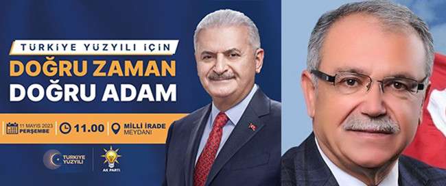 İlçemiz adına büyük kazanımların yaşandığı bir dönemde seçimi demokrasi şölenine çevirmek adına son başbakanımız partimizin Genel Başkanvekili Sayın Binali Yıldırım ilçemize gelerek 11 Mayıs Perşembe Günü Saat 11:00 de Milli İrade Meydanında düzenleyeceğimiz mitingde söz değerli halkımıza hitap edecektir. Tüm ilçe halkımızı coşkuya ortak olmaya, meydanı Reisimize yakışır şekilde doldurmaya davet ediyorum.” Şeklinde konuştu.
