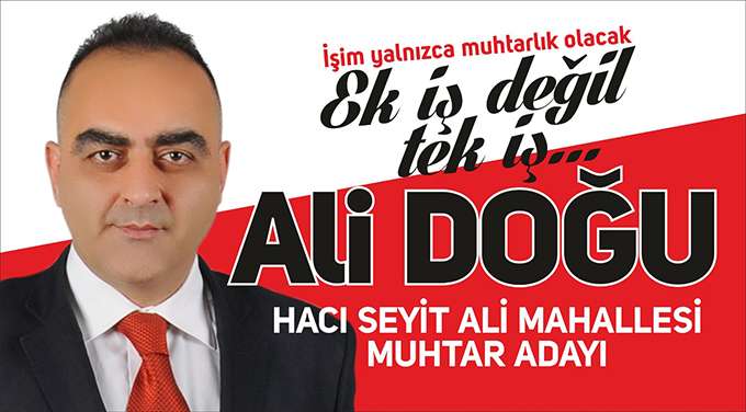Hacı Seyit Ali Mahallesi Muhtar adayı Ali Doğu, seçim çalışmalarını sürdürüyor.