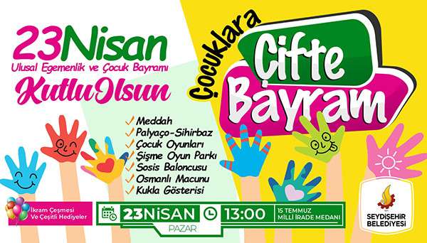 Seydişehir Belediye Başkanı Mehmet Tutal, Ramazan Bayramının 3. Günü ve 23 Nisan Ulusal Egemenlik ve Çocuk Bayramı dolayısıyla “Çocuklara Çifte Bayram” sloganıyla şenlik düzenleyecek.