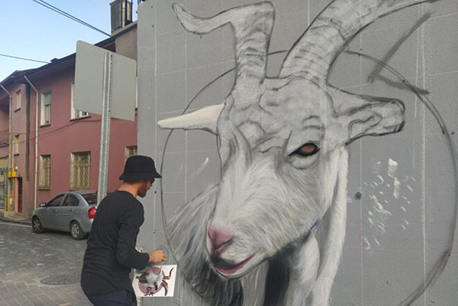Brezilyalı Louis, sokak duvarına kurban keçisi resmetti