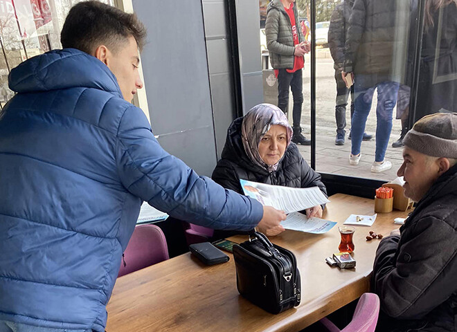 Yaşanan ekonomi krizle vatandaşın alım gücünün düştüğü son günlerde Cumhuriyet Halk Partisinin hazırladığı kurtuluş reçetesini ve Millet İttifakının seçimi kazandığı anda yapılacak çalışmaların yer aldığı broşürleri dağıtarak vatandaşları bilgilendiriyorlar.