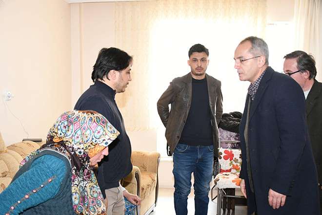 Kaymakam Deniz Pişkin ve Belediye Başkanı Mehmet Tutal, misafir edilen depremzede vatandaşları ziyaret etti. Depremzedelerin acılarına ortak oldular. ‘’Hoş geldiniz, burası sizin eviniz. Başımızın üstünde yeriniz var’’ dedi.