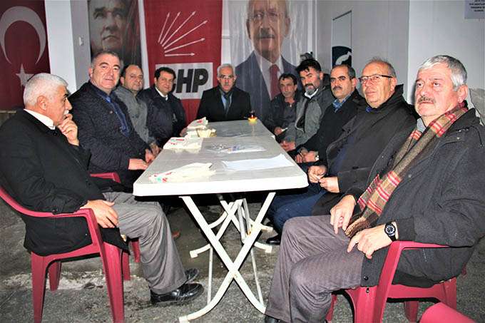 CHP ilçe başkanı Orhan Özel, Belediye Başkan adayı Mehmet Katlav ve yöneticiler Esnaf Kefalet kooperatifi başkanı Durmuş Onar ile yöneticilerini kapıda karşıladılar.
