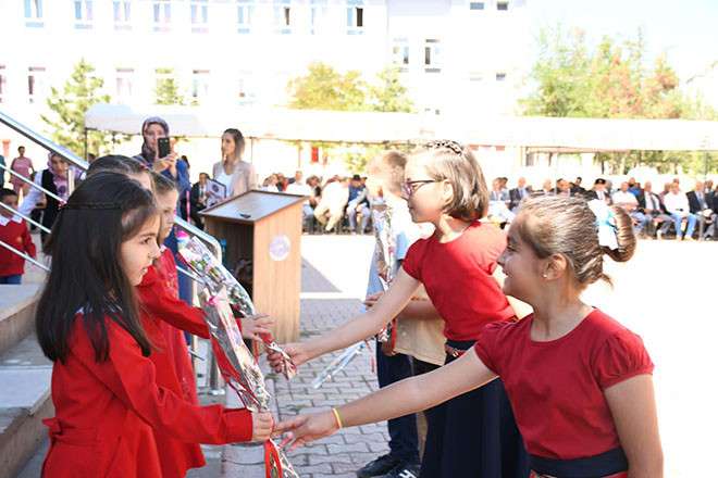 Öğrenciler tarafından şiir ve halk oyunları gösterilerinin sergilendiği programda, yeni gelen öğrencilere hoş geldiniz çiçeği ve bayrak teslimi yapıldı. Kutlamalar, öğrencilerin ellerinde bayraklarla söylediği marşlarla ve şarkılarla son buldu.