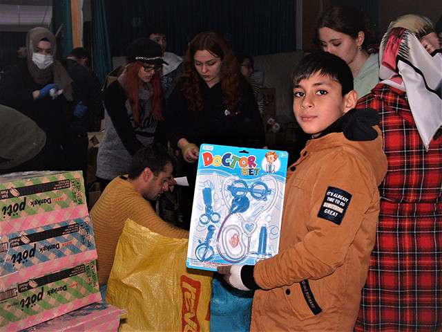 Seydişehir Gazi ilkokul 5 sınıf öğrencisi 11 yaşındaki Ali Osman Uluer, Oyuncaklarını afet bölgesindeki kardeşlerine gönderilmek üzere yardım merkezine teslim etti.
