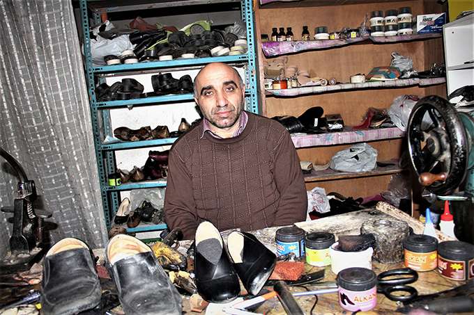 Evli ve 2 çocuk babası 1996 yılında beri Alaylar 2 mahallesinde ayakkabı tamirciliği yapıyor.