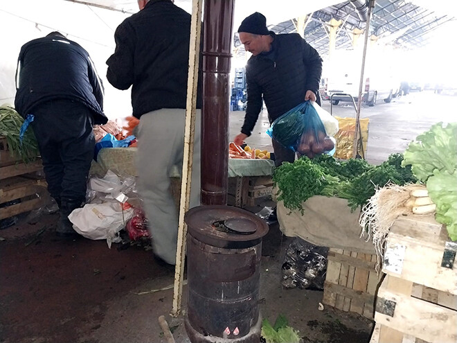 Havanın çok soğuk olmasından dolayı pazara gelmeyen müşteriler ve pazarcı esnafı da var. Bazı pazarcılar ise satışlarımız yok hiç olmazsa hem kendimiz hem de ürünlerimizin donmaması için gayret sarf ediyoruz. Dediler