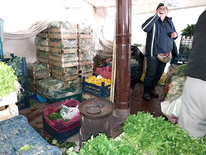 Pazarcılardan Mehmet Doğu, "Soğuklar da iyiden iyiye kendini hissettirdi. Soğuk günlerde bu ateşi yakıp ısınmazsak hasta oluruz. Çok erken saatlerde gelip tezgâhlarımızı açıyoruz, geç saatlerde de toplayıp gidiyoruz. Ortalama 10 saat pazardayız. Bizler de yanımızda getirdiğimiz odun parçaları zaman zaman kömürler ile ısınmaya çalışıyoruz. Üşüyen müşterilerimiz de zaman zaman ateş başına geçerek ısınıyor" diye konuştu.