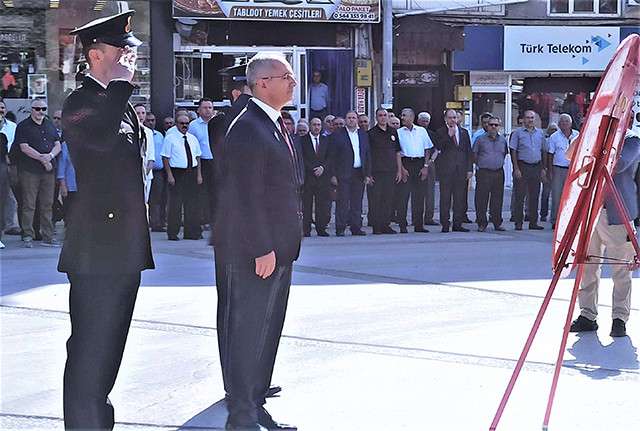 Atatürk Anıtı’ndaki tören saygı duruşunun ardından İstiklal Marşı’nın okunmasıyla birlikte bayrak göndere çekildi. Daha sonra Kaymakam Deniz Pişkin, makamında tebrikleri kabul etti. Şehitlik ziyareti ile program sona erdi.