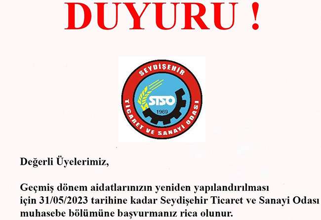 31/12/2022 ve öncesi aidat borçlarınızın gecikme faizlerinin silinerek ödeyebilmeniz için 31/05/2023 tarihine kadar odamıza başvurmanız gerekmektedir.