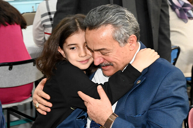 Başkan amcalarını gördüğü için çok sevinen geleceğin umudu çocuklar, Başkan Mehmet Tutal’a sarılarak sevgilerini gösterdi.