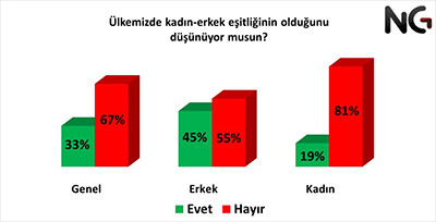 NG araştırma şirketi tarafından Türkiye'de Kadın Olmak konulu yapılan kamuoyu araştırma sonuçları yayınlandı.