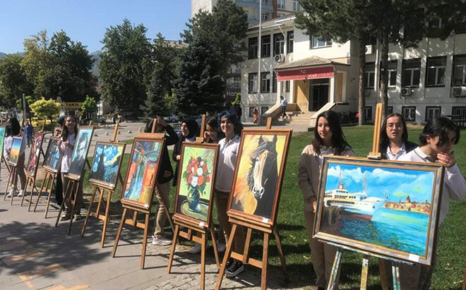 Seydişehir Seyyid Harun Anadolu Lisesi, görsel sanatlar eğitimi öğretmeni Erol Köse rehberliğinde Hükümet Konağı önünde, öğrencilerinin yaptıkları eserlerden oluşan ‘‘ZAMAN, İNSAN, RENK’’ adlı açık hava resim sergisini açtı.